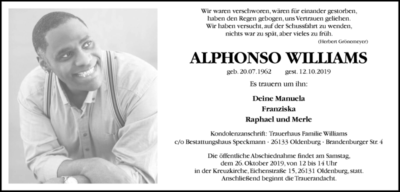 Alphonso Williamsgestorben am 12. Oktober 2019