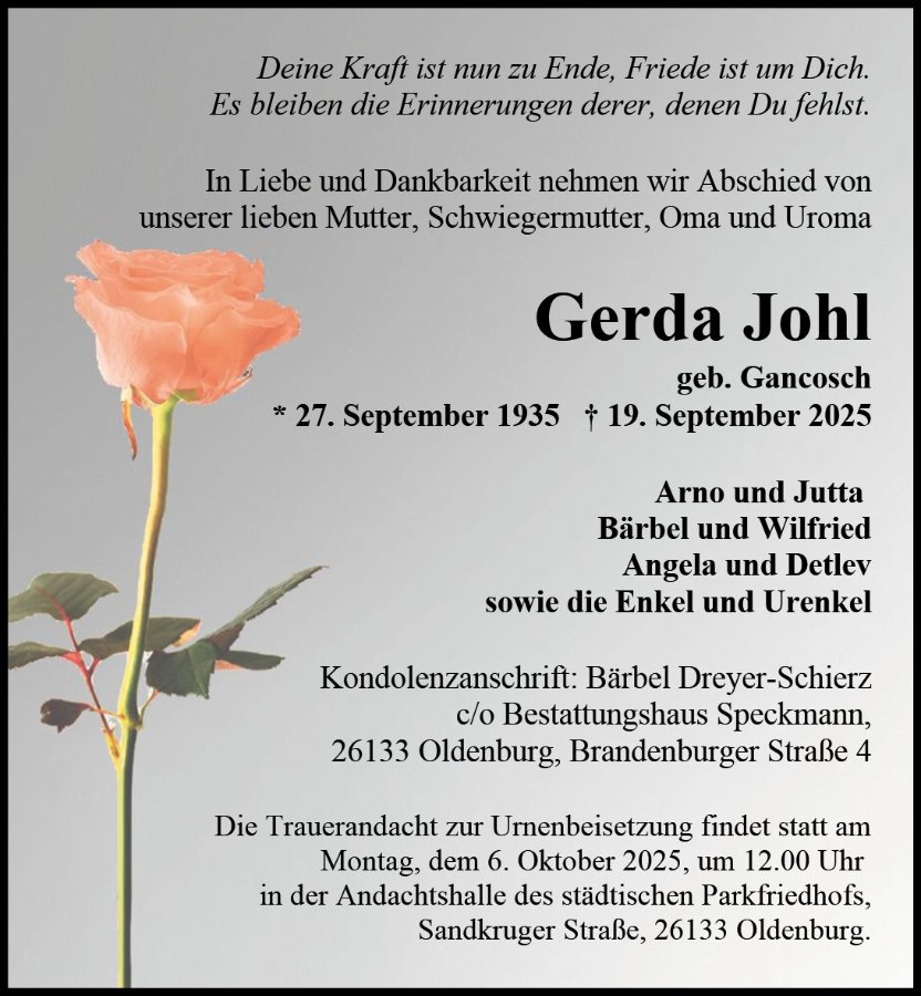 gestorben am 19. September 2025 in Oldenburg
