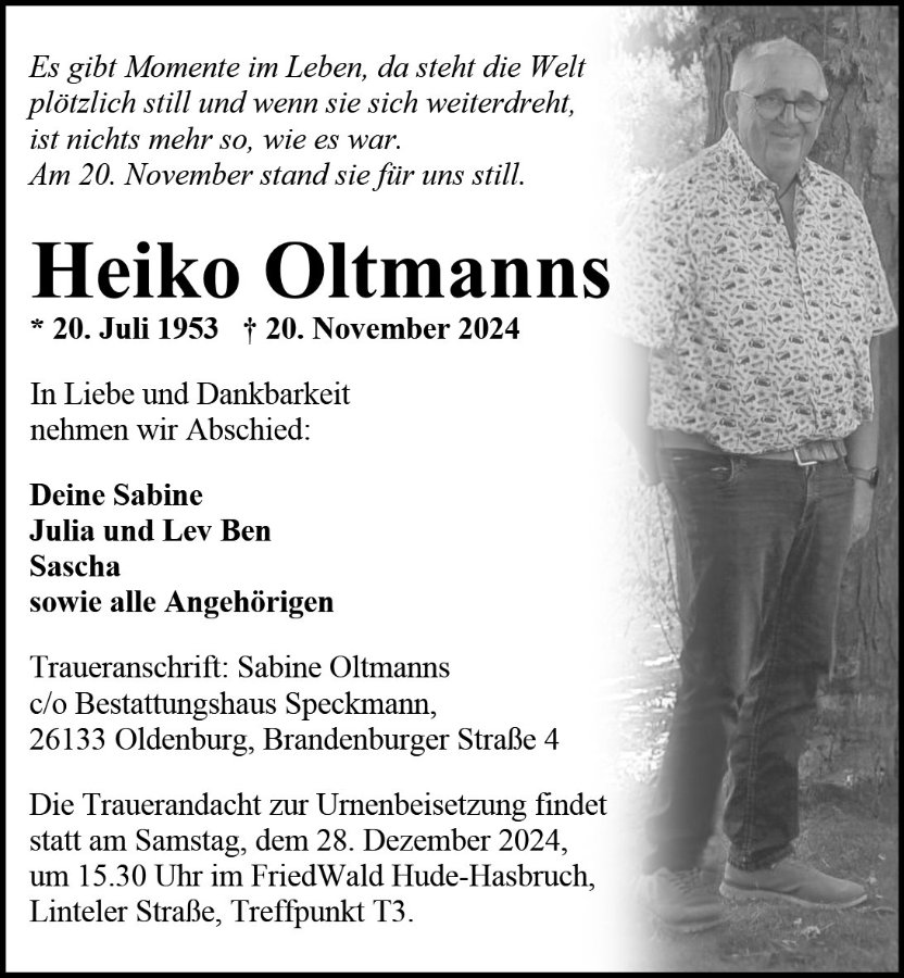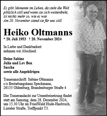 gestorben am 20. November 2024 in Oldenburg