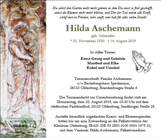 gestorben am 14. August 2019 in Oldenburg