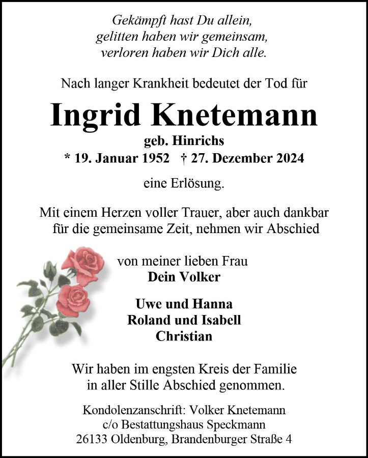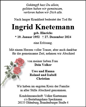 gestorben am 27. Dezember 2024 in Oldenburg