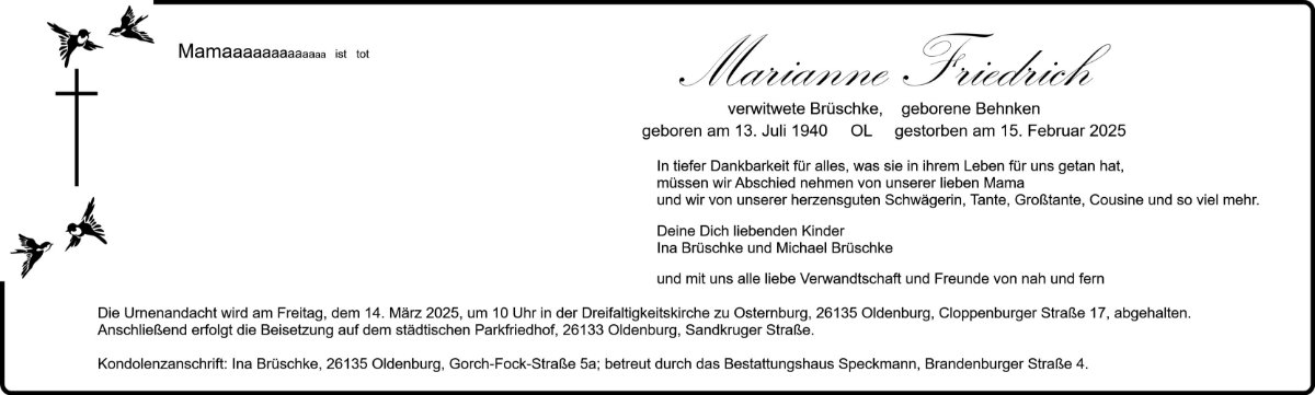 Marianne Friedrichgestorben am 15. Februar 2025